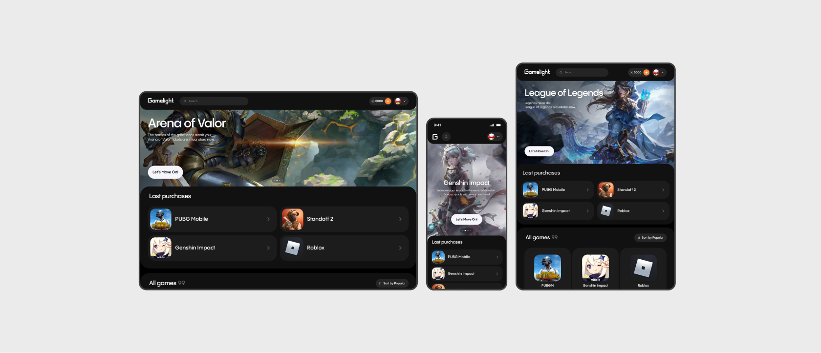 Gamelight — сервис для приобретения ключей, покупки внутриигровой валюты и пополнения игровых сервисов. Ориентирован на пользователей мобильных платформ в странах СНГ у которых нет возможности пополнить счет в силу введенных ограничений.